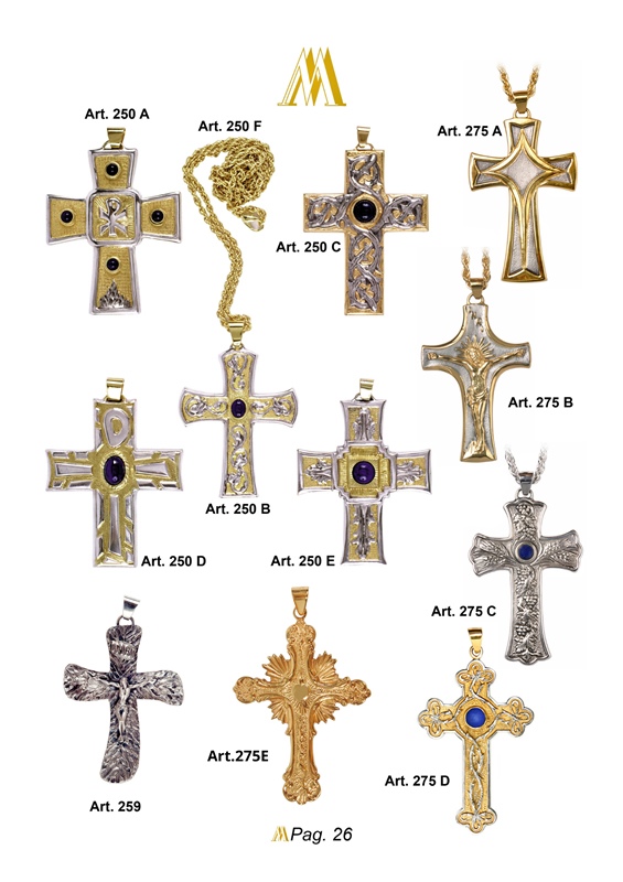 La nostra linea di croci pettorali viene realizzata sia in metallo che interamente in argento con possibili incisioni sul retro. Su richiesta forniamo anche la catena argentata o dorata, metallo o argento, e la relativa custodia.